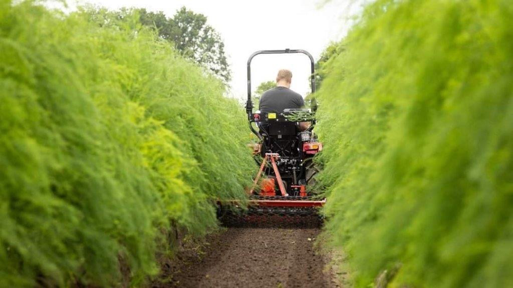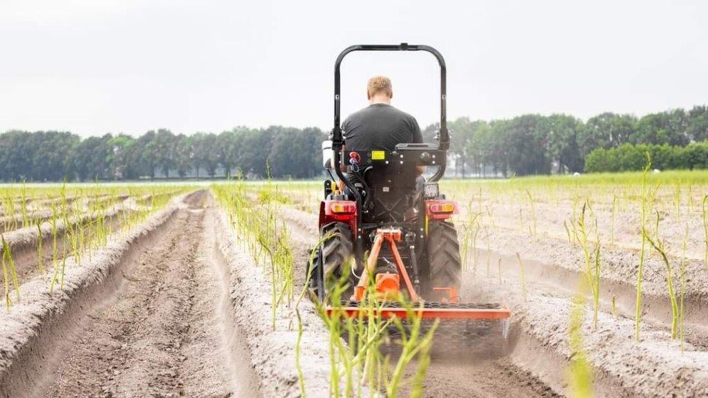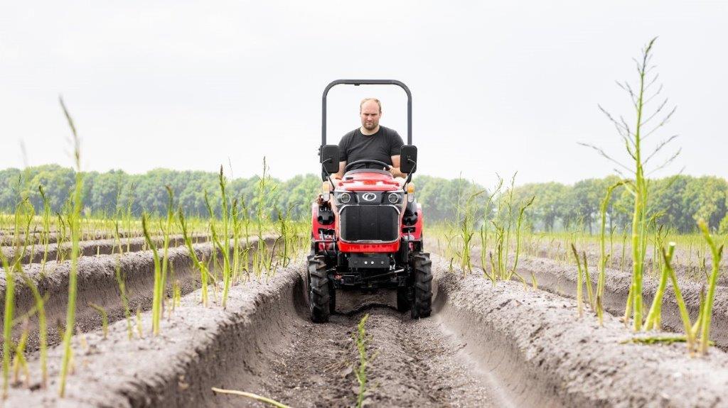 Motor diesel Euro 5 Mitsubishi de 3 cilindros arrefecido a água, tração integral, 25cv, caixa de velocidades manual, suspensão de 3 pontos (categoria 1), direção assistida, saída traseira hidráulica de circuito simples, capacidade de carga de 350 kg, vários tamanhos de pneus para diferentes utilizações, várias relações de tomada de força, trator de via estreita.